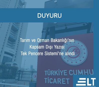 Tarım ve Orman Bakanlığı’nın Kapsam Dışı Yazısı Tek Pencere Sistemi’ne alındı